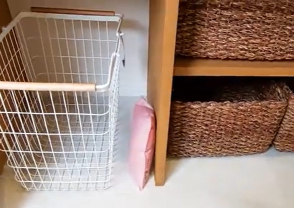 クローゼットでは、細長く省スペースでも置きやすい「炭八押入れ用」を上段に1袋・下段の角に1袋置いておきましょう。