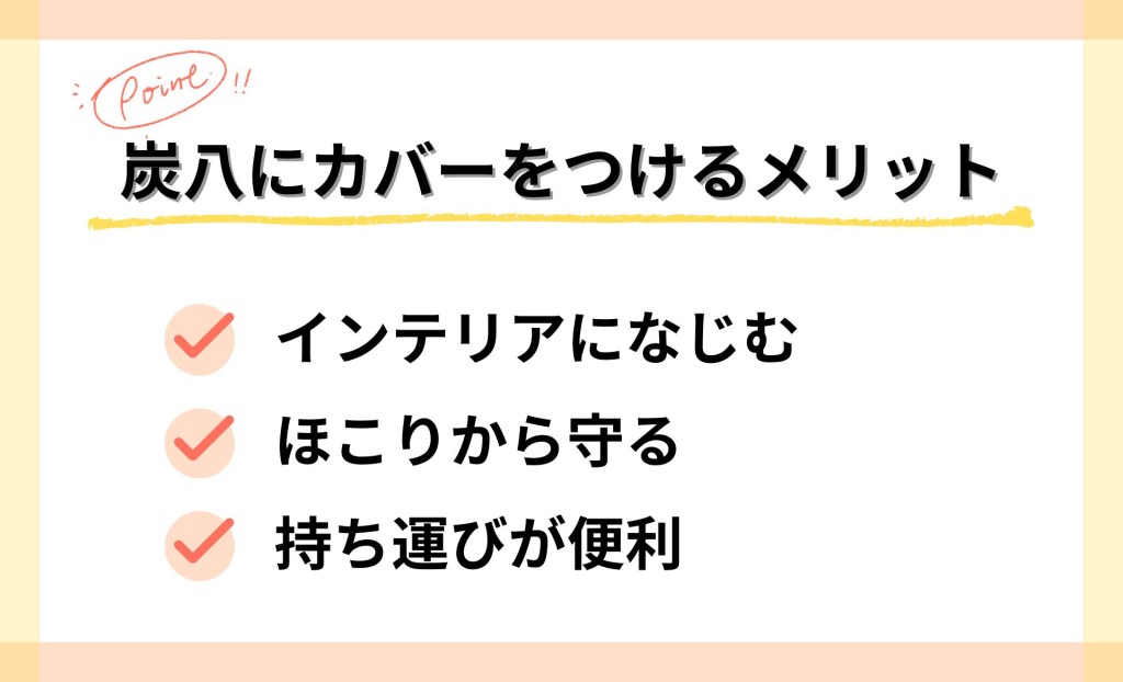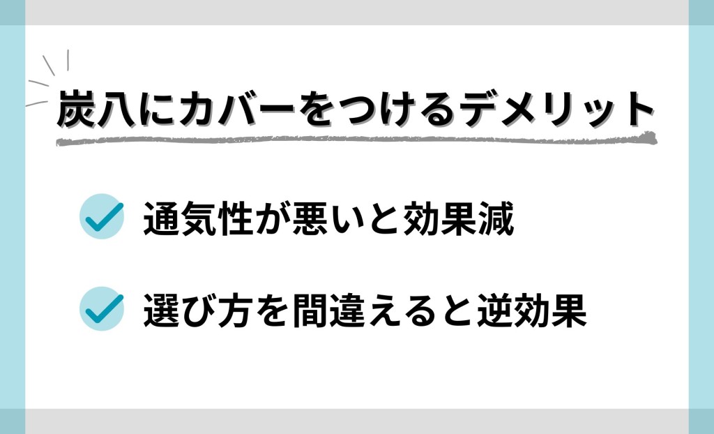 炭八にカバーをつけると、以下のようなメリット・デメリットがあります。