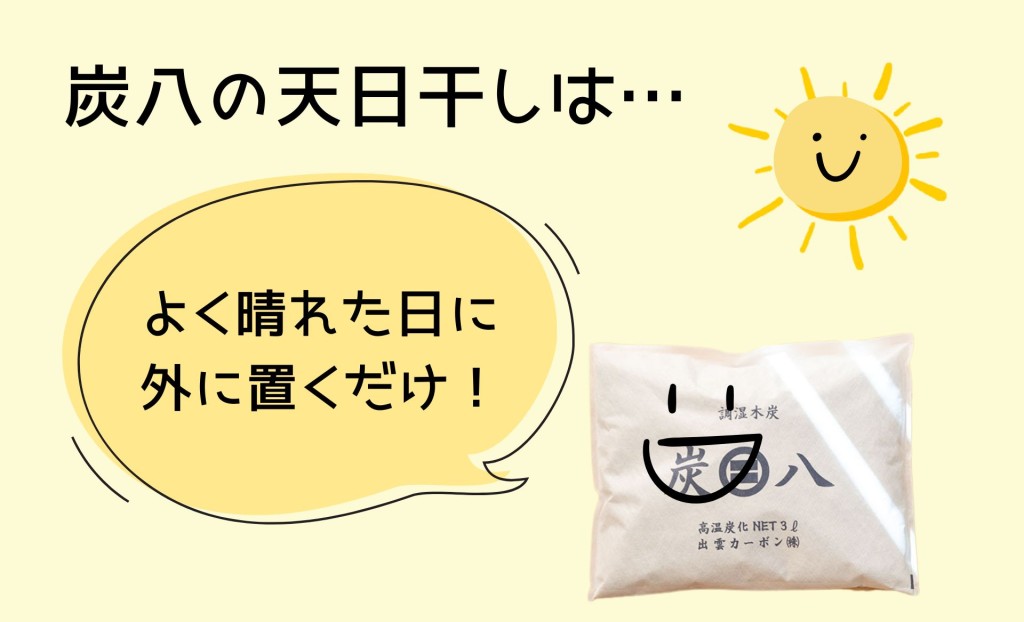 炭八は天日干ししなくても使えますが、効果が落ちる場合があります。